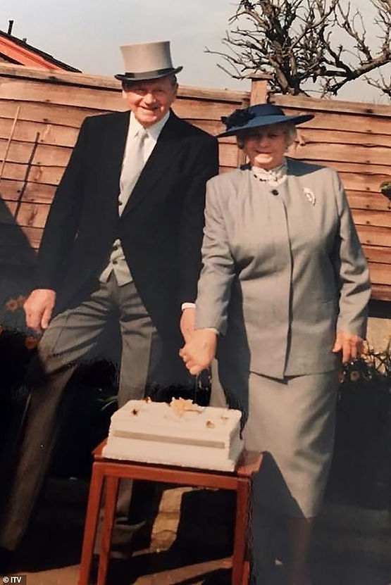 Before reconnecting with her foster brother, Kate, who lives with her husband Ray and her son Alexander, eight, recalls: ‘At school if anyone tried to pick on me [John] was the one that would be there to stick up for me.’ Pictured, the adoptive parents Jim (left) and Irene (right) of Kate