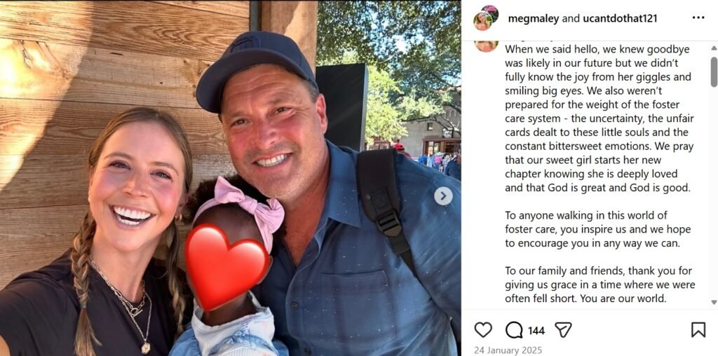 “When we said hello, we knew goodbye was likely in our future, but we didn’t fully know the joy from her giggles and smiling big eyes,” Maley wrote on Instagram at the time. “We also weren’t prepared for the weight of the foster care system – the uncertainty, the unfair cards dealt to these little souls, and the constant bittersweet emotions. We pray that our sweet girl starts her new chapter knowing she is deeply loved and that God is great and God is good.”